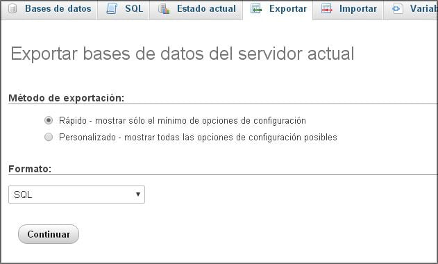 Nota: Antes de hacer cualquier cambio en la base de datos de tu sitio web, es altamente recomendable, hacer una copia de seguridad "backup" de la base de datos en particular, para asegurar los datos almacenados.
