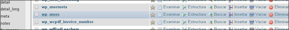 Nota:Si cambiaste el prefijo de la base de datos con anterioridad, la tabla de usuarios será algo como prefijo_users donde la palabra prefijo representa el actual prefijo de todas la tablas.